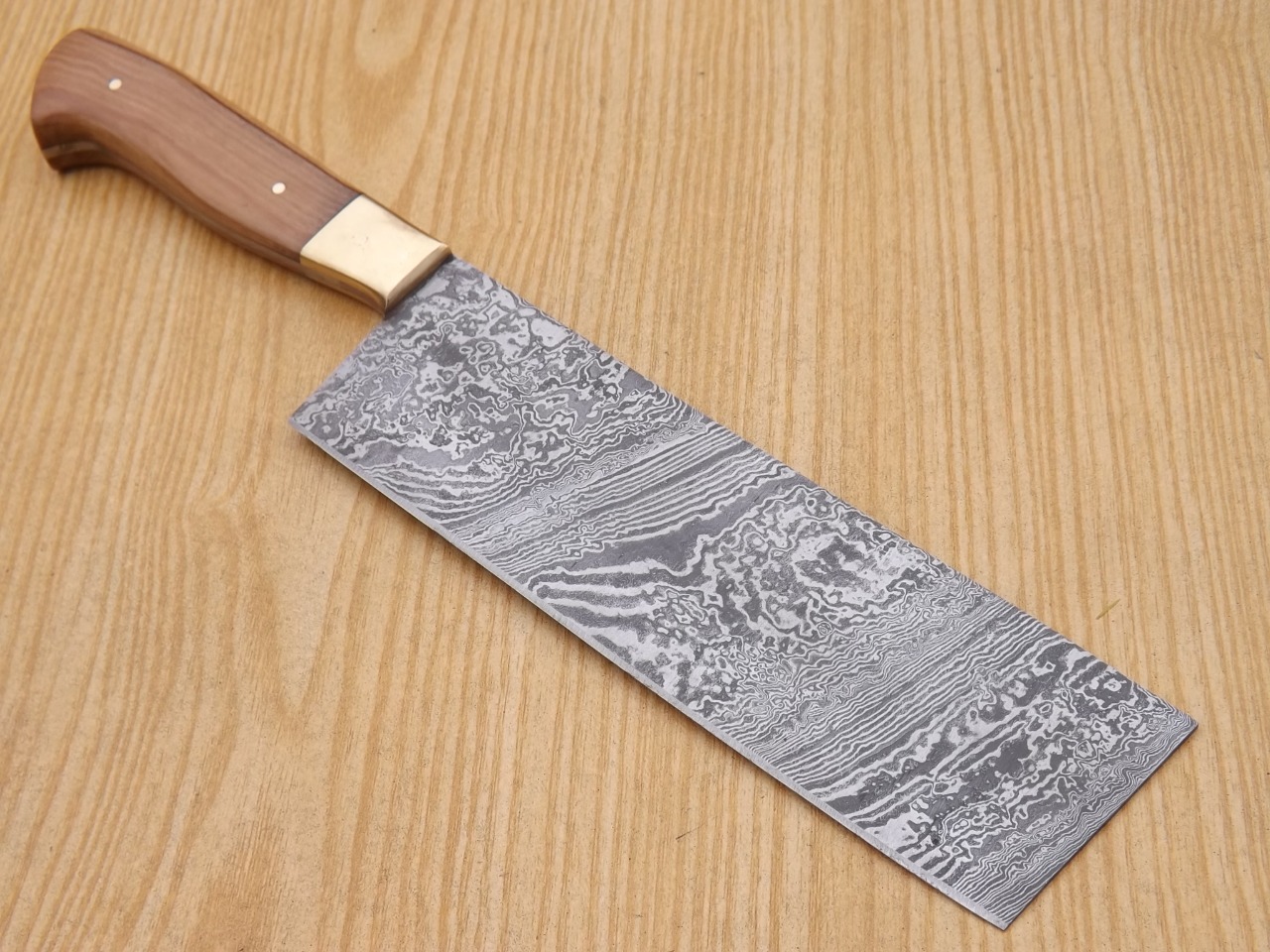 Damascus Steel cheff cleaver with paka wood handle with brass bolster